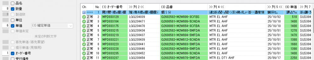 左 お客様の納品一覧(手入力)と 右 弊社システムの情報 を並べて照合を開始します。