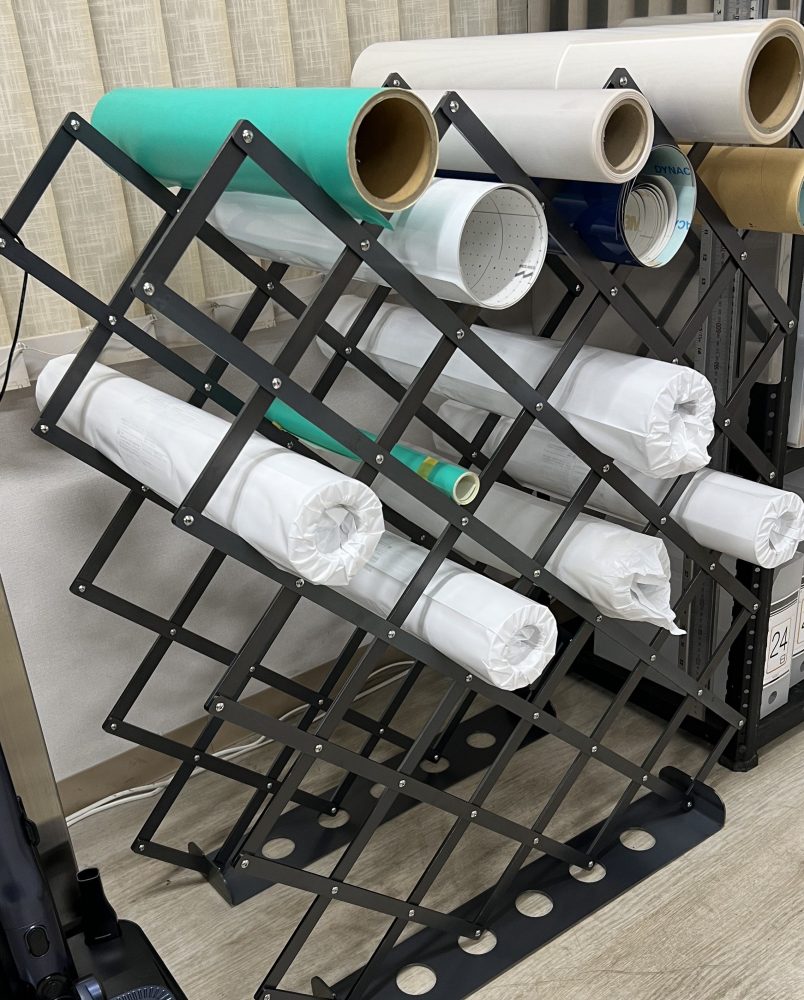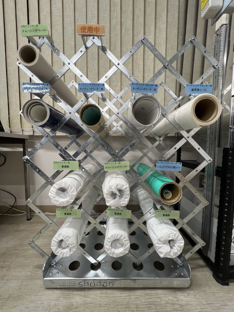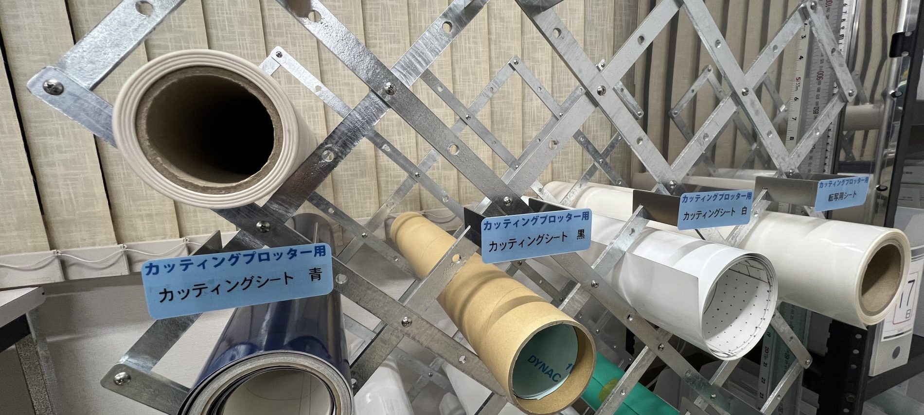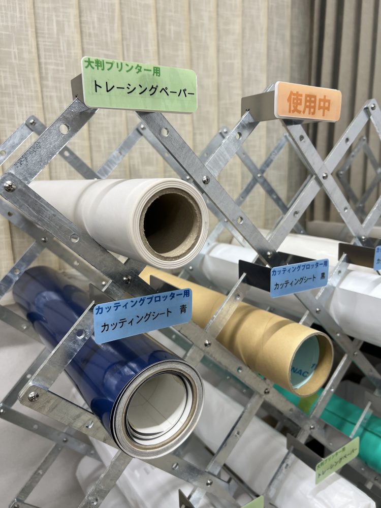そのままでは転がって重ねられない上に、大判プリンターとカッティングシートでは長さも違います。