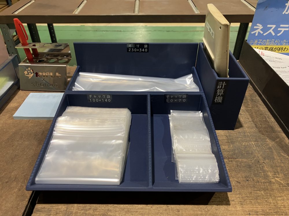 梱包資材袋は、小物を中心に使用し、使用頻度も高いのですが置き場までの距離があるという問題点がありました。