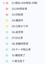 タグ(ラベル)を色分けし、案件の状態を一目で分かるようにしました。