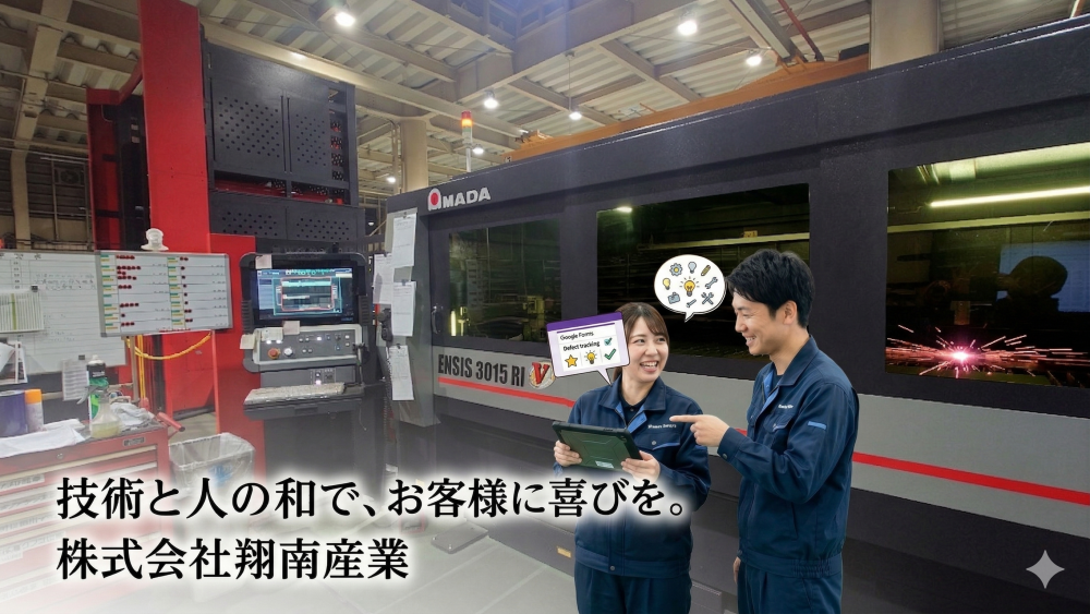 翔南産業の自慢は、ピカピカの最新レーザー加工機……だけでなく、現場スタッフの「もっと良くしよう!」というちょっとした工夫です。